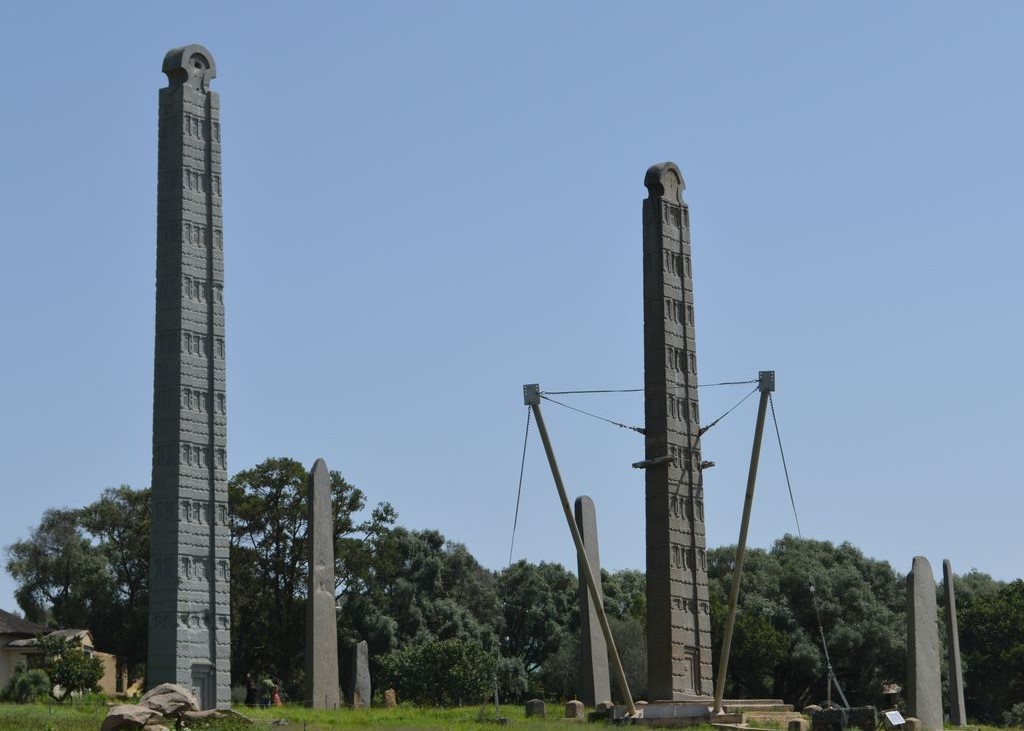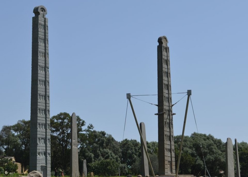 Axum's 4th-century, 24-meter granite obelisk weighs 160 tonnes and features false doors and window-like decorations.
